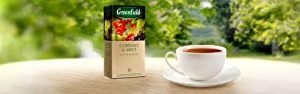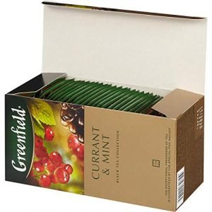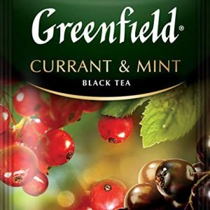 - Tea Greenfield Currant and Mint black long leaf 25 bags – wonderful tea with a taste of bright and warm summer! Currant bouquet brings great touches to the deep taste of black tea. The refined sweetness of black currant echoes the light sourness of red, and spicy mint completes this amazing composition, adding to the drink summer freshness and coolness.