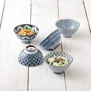 Saikai Pottery Traiditional Japanese Rice Bowls (5 bowls set) 19541 (One Pack)